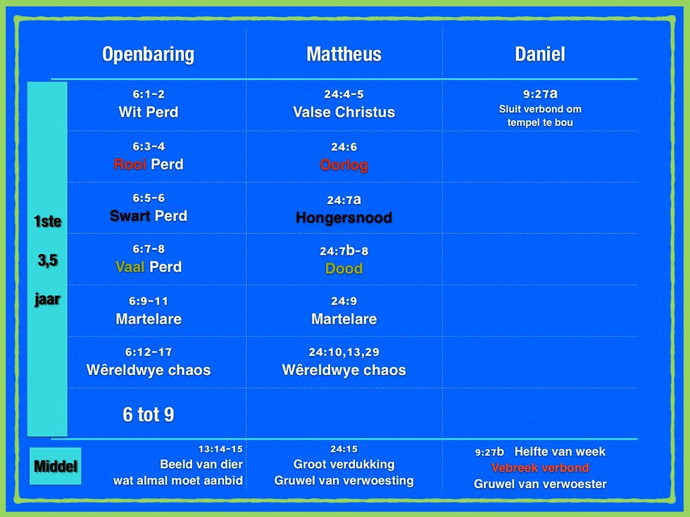 Oorsig en vergelyking van Openbaring, Mattheus en Daniel!